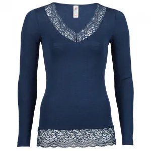 Дамско копринено термобельо Engel Women's Shirt L/S mit Spitze Silk base layer - Marine