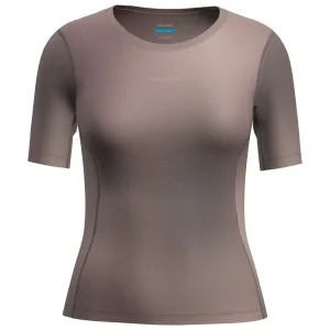 Дамски долна фланелка с къс ръкав Icebreaker Women's Merino 75 CL Featherlight S/S Crewe AOP Sport shirt - Porcini / Pink Quartz